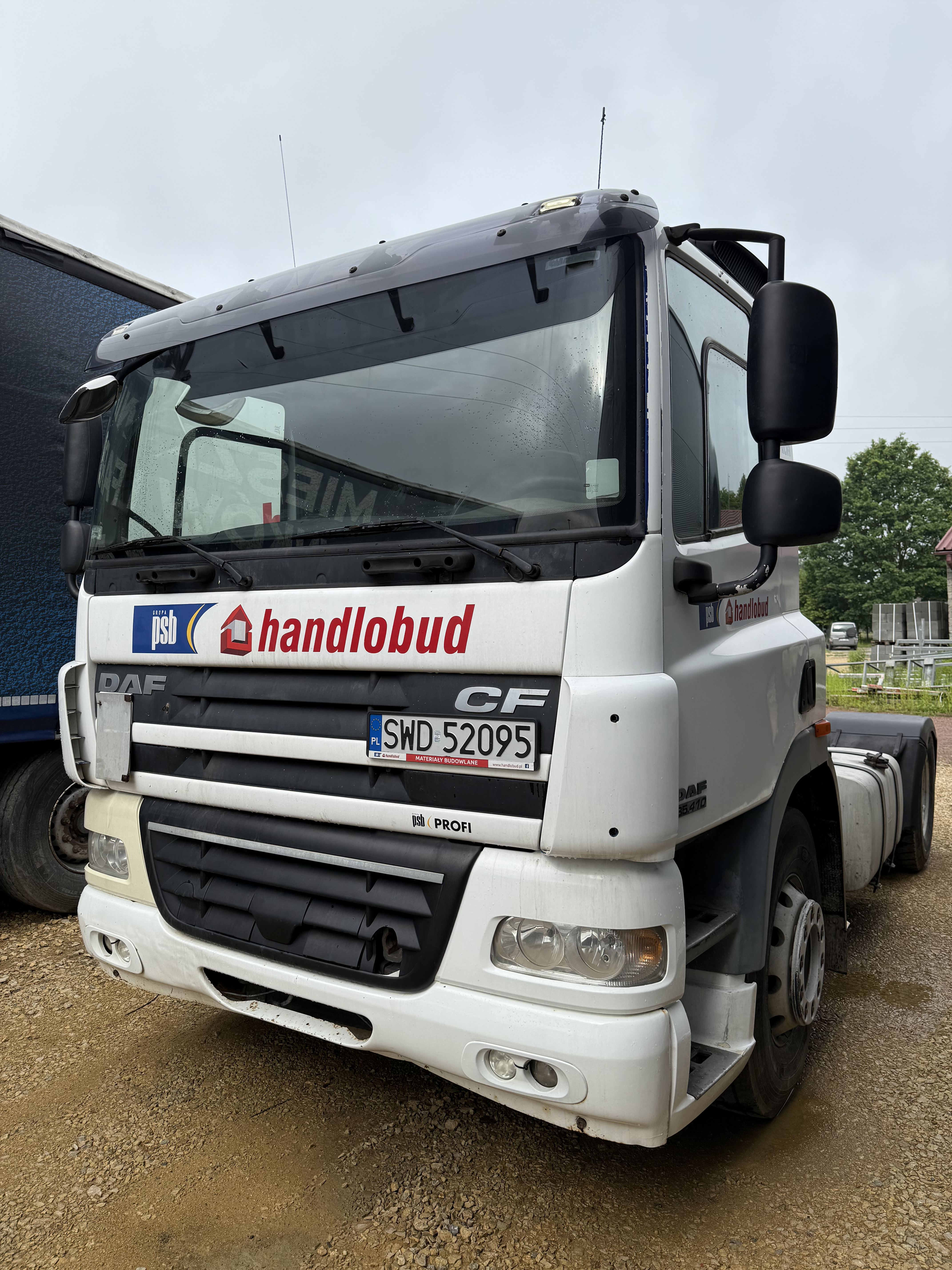 DAF CF85.460, rok produkcji 2011, w normie Euro 5. Ciągnik siodłowy z kabiną dzienną, wyposażony w hydraulikę oraz klimatyzację.