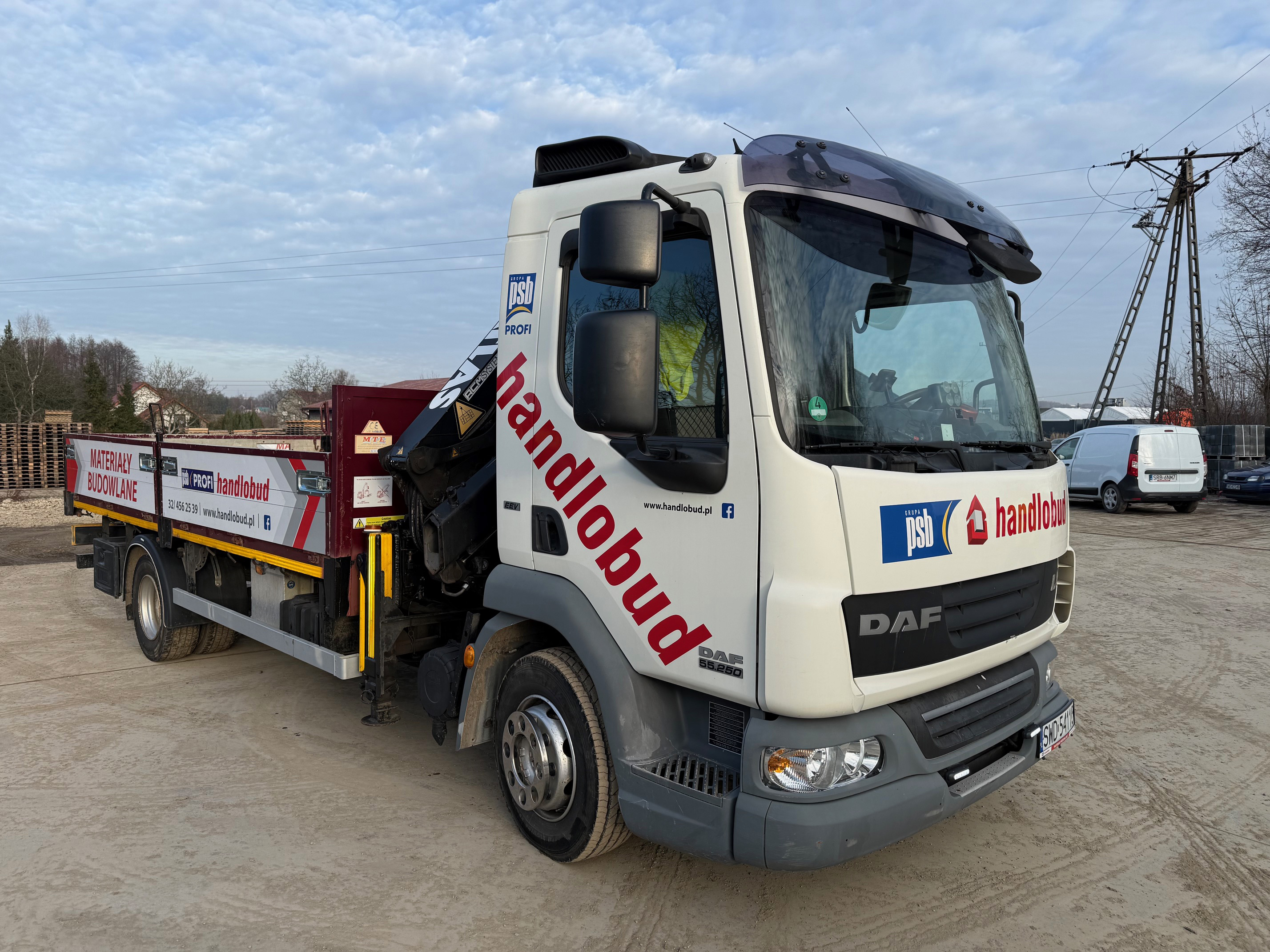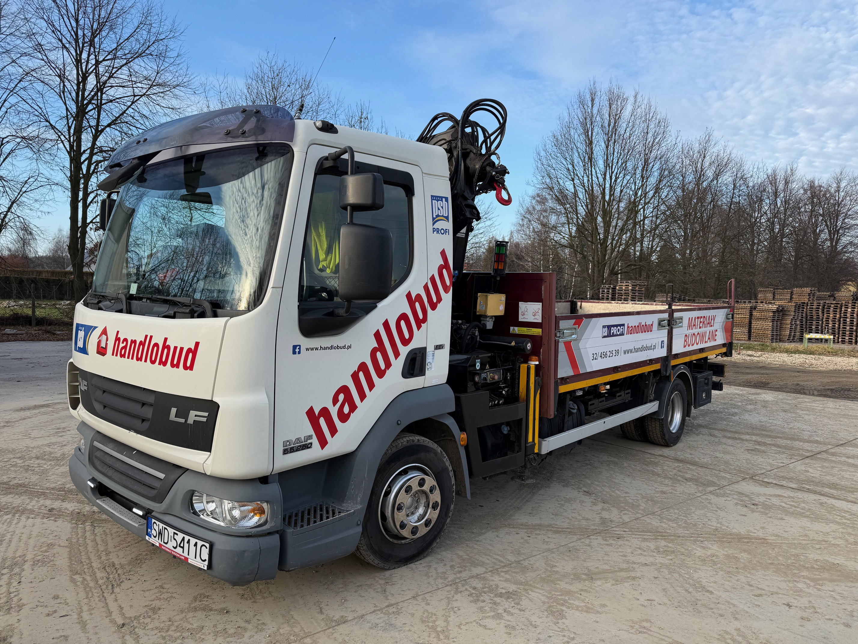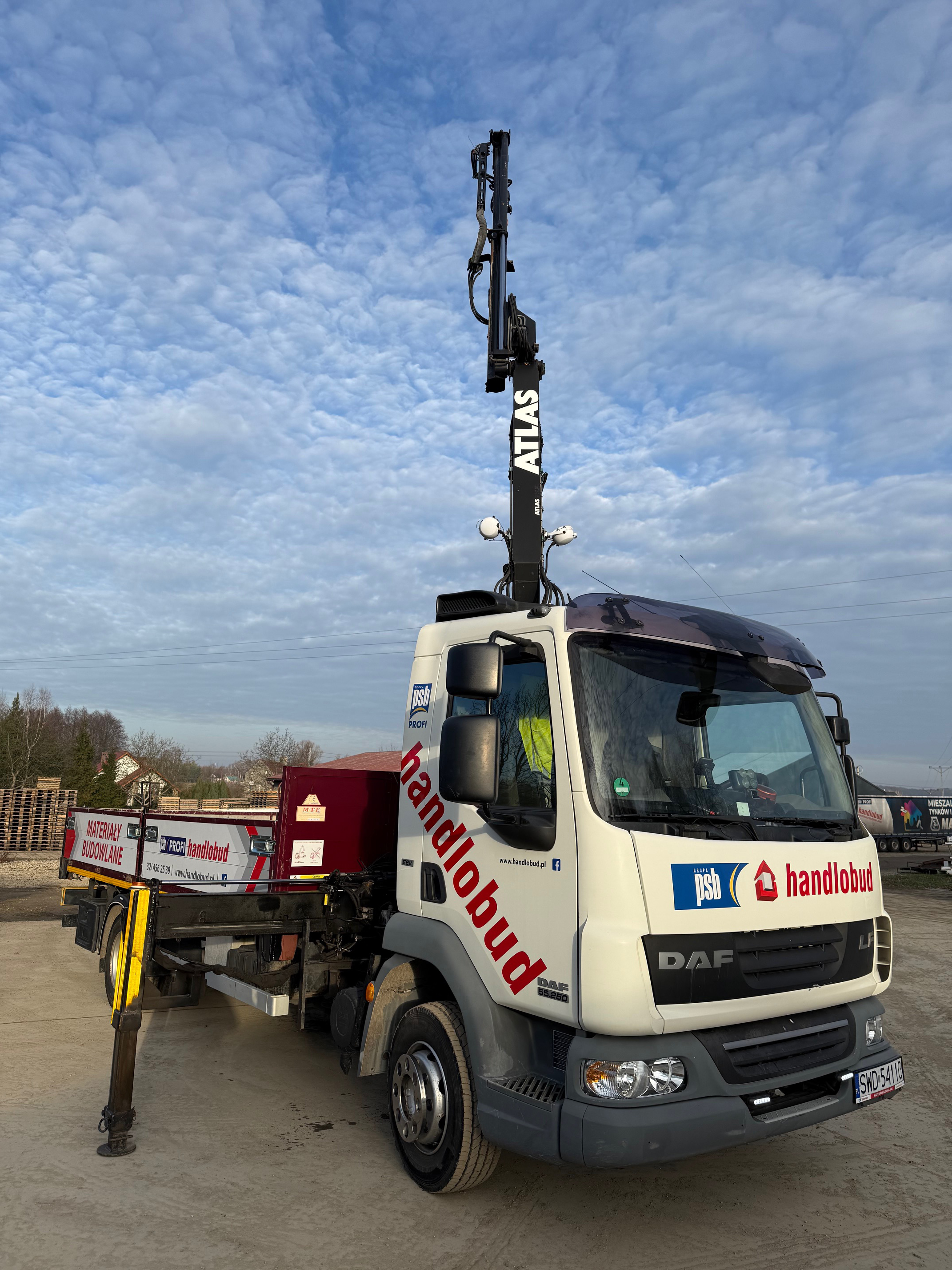 DAF LF 55.250 w normie EEV / Euro 5, wyposażony w automatyczną skrzynię biegów, klimatyzację oraz napęd 4×2 z blokadą mostu. Pojazd posiada zabudowę skrzyniową o wymiarach 4,8 × 2,3 m oraz żuraw HDS ATLAS 75.2 z rotatorem, sterowany zarówno pilotem, jak i ręcznie.