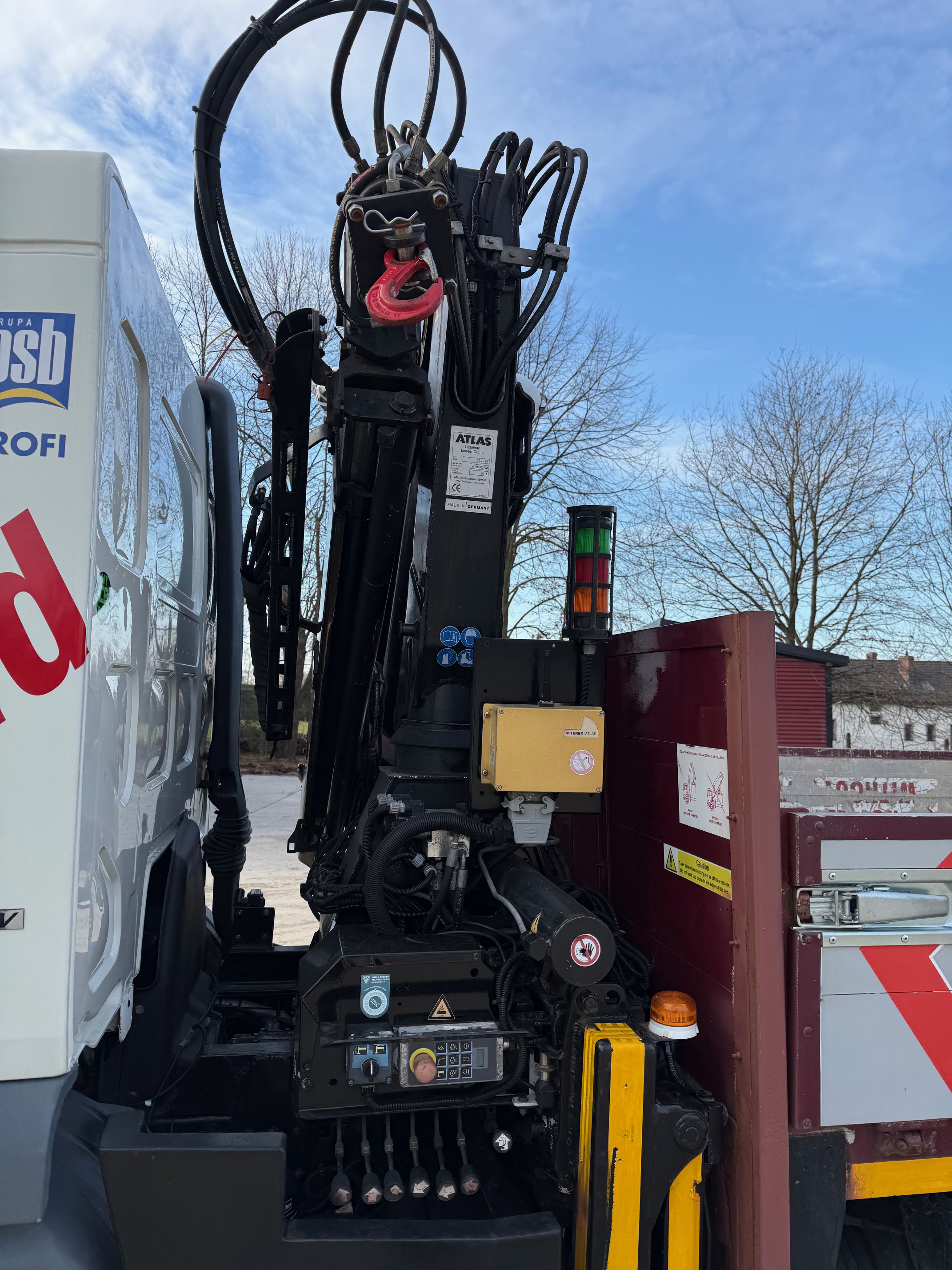 Zabudowa skrzyniowa o wymiarach 3,5 × 2,4 m oraz żuraw HDS ATLAS TLC 75.2 ze sterowaniem ręcznym. Udźwig 1 400 kg przy wysięgu 5,4 m. Zaczep z układem pneumatycznym umożliwia ciągnięcie przyczepy.